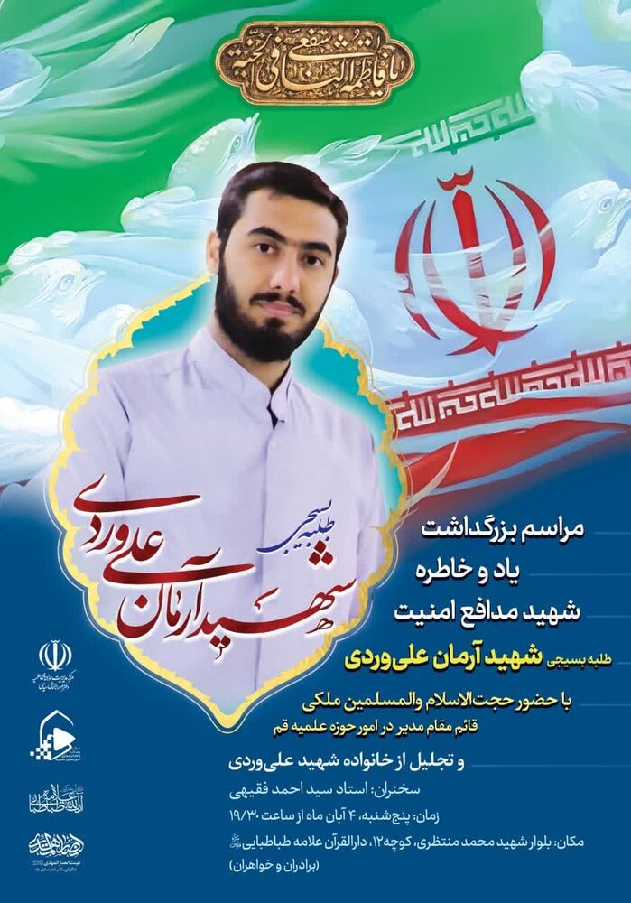 شهید آرمان علیوردی طلبه ۲۱ ساله حوزه علمیه آیتالله مجتهدی و بسیجی یگان امنیتی امام رضا(ع)، ساکن محله شهران تهران بود که در آبان ۱۴۰۱ به دست برادران فکری مهسا کومله ای به مقام شهادت رسید…