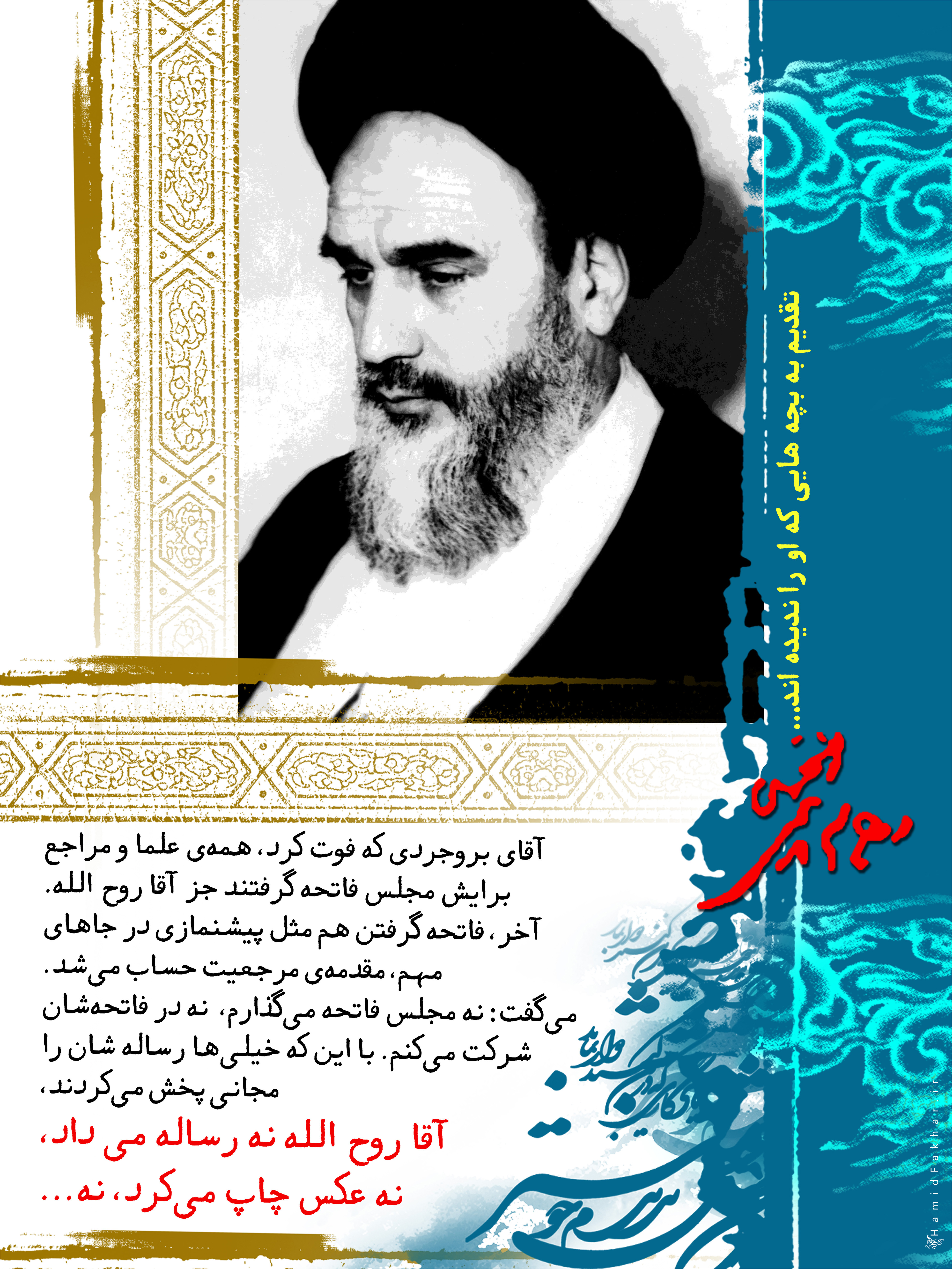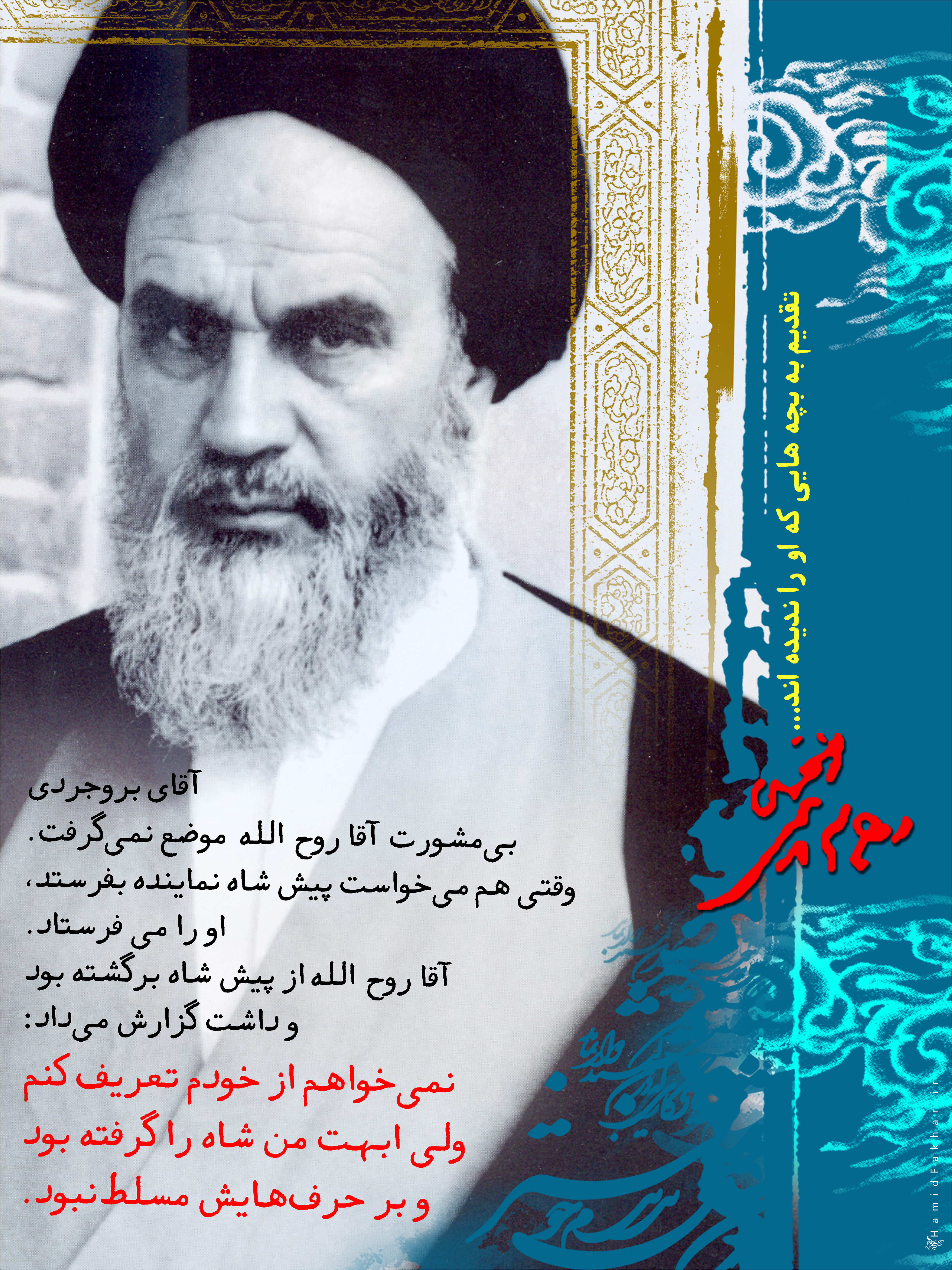آقاي بروجردي بيمشورت آقا روحالله موضع نميگرفت. وقتی هم ميخواست پيش شاه نماينده بفرستد، او را می فرستاد.